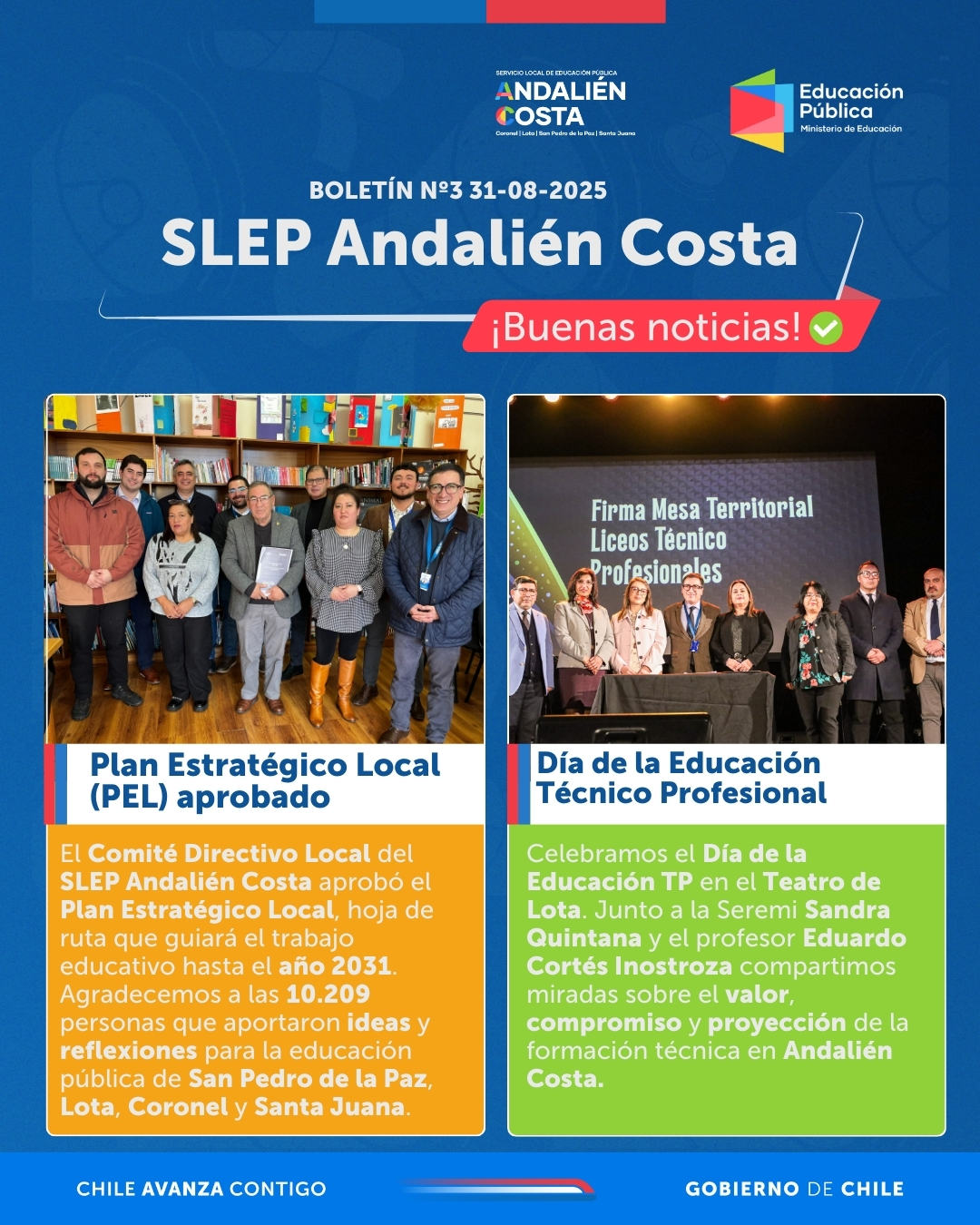 El Servicio Local de Educación Pública Andalién Costa invita a toda la comunidad educativa a participar activamente en el proceso de conformación del Consejo Local de Educación Pública (CLEP), un espacio democrático y representativo que fortalece la participación y la voz de nuestras comunidades escolares. Antes de votar, puedes revisar tus datos electorales en el […]
