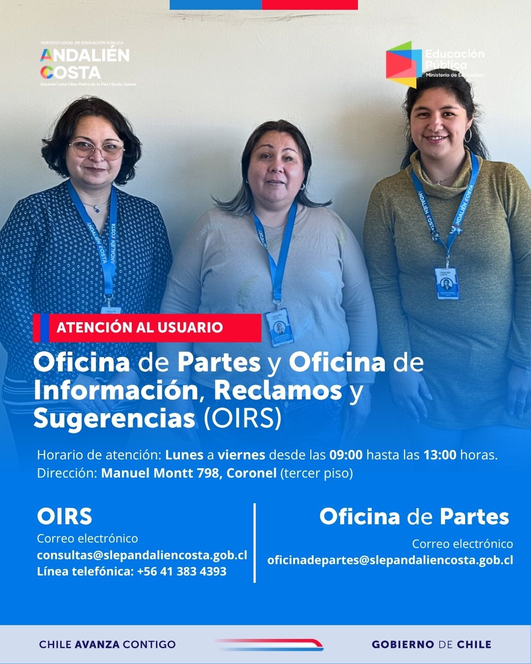 El Servicio Local de Educación Pública Andalién Costa cuenta con su Oficina de Partes y la Oficina de Información, Reclamos y Sugerencias (OIRS) para recibir documentos, resolver dudas y canalizar consultas de la comunidad educativa de Coronel, Lota, San Pedro de la Paz y Santa Juana. Horario de atención presencial Oficina de Información, Reclamos y […]