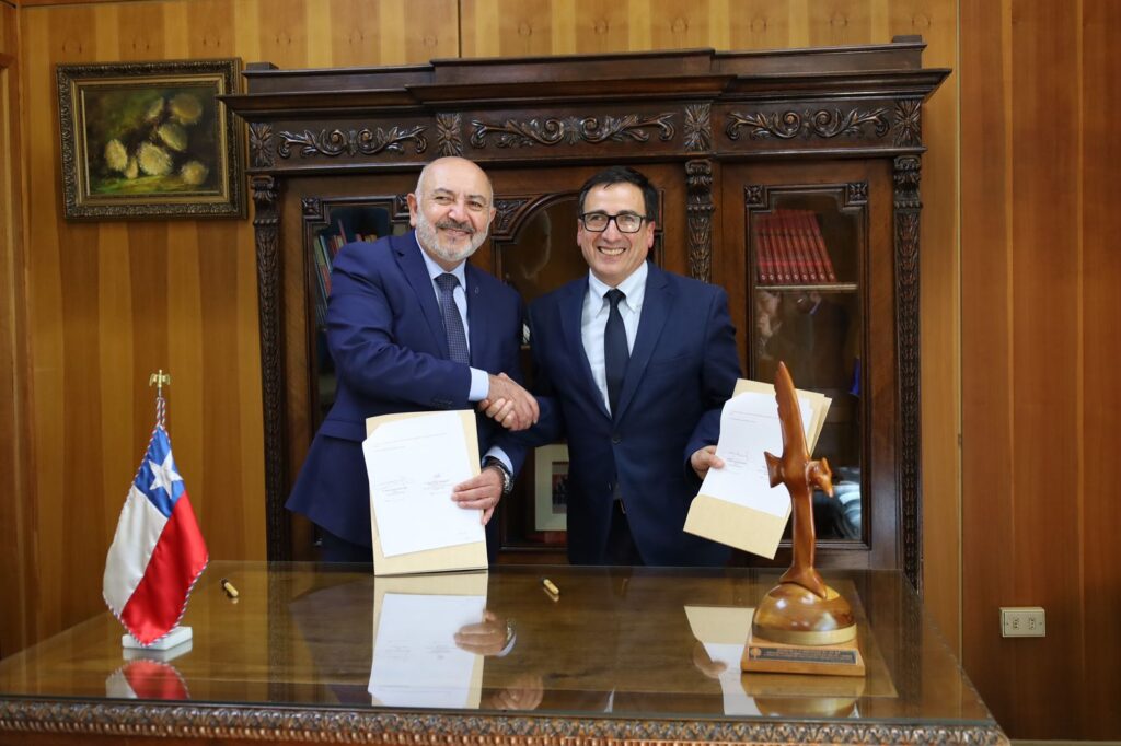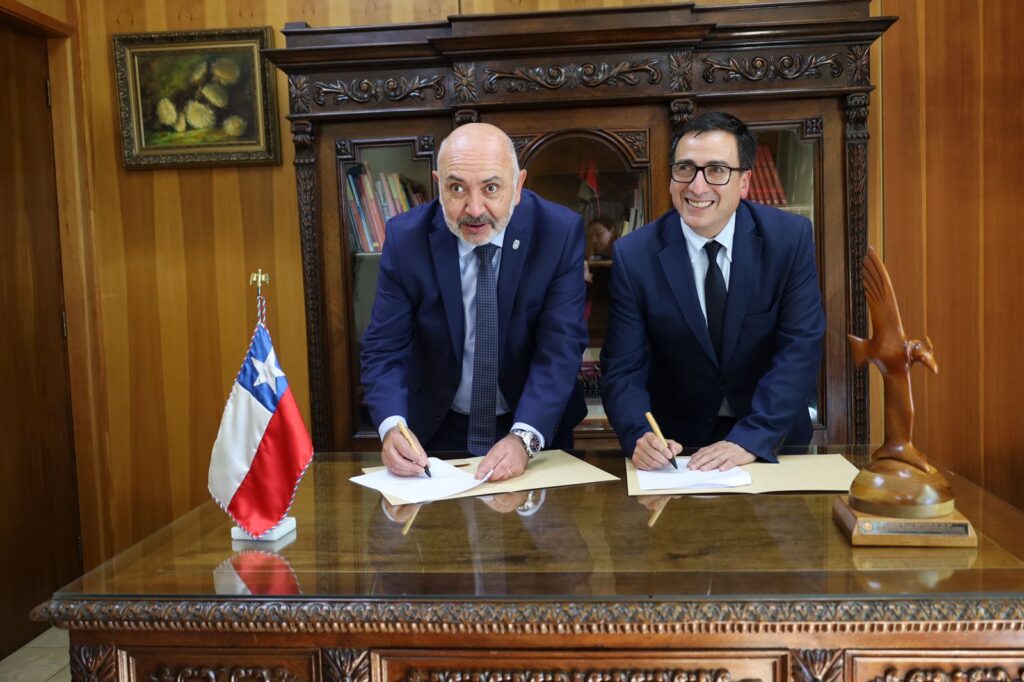 El director ejecutivo Ramón Jara Zavala y el rector la Universidad del Biobío Benito Umaña Hermosilla, firmaron un convenio de colaboración para trabajar en conjunto en áreas como educación, arquitectura, gestión, capacitación y prácticas profesionales.